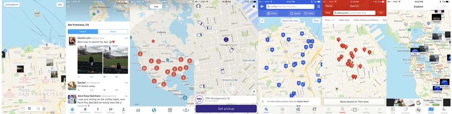 📲 Google’s & Apple’s maps in Instagram, Twitter, Periscope, Lyft, Foursquare, Yelp, and Shazam.