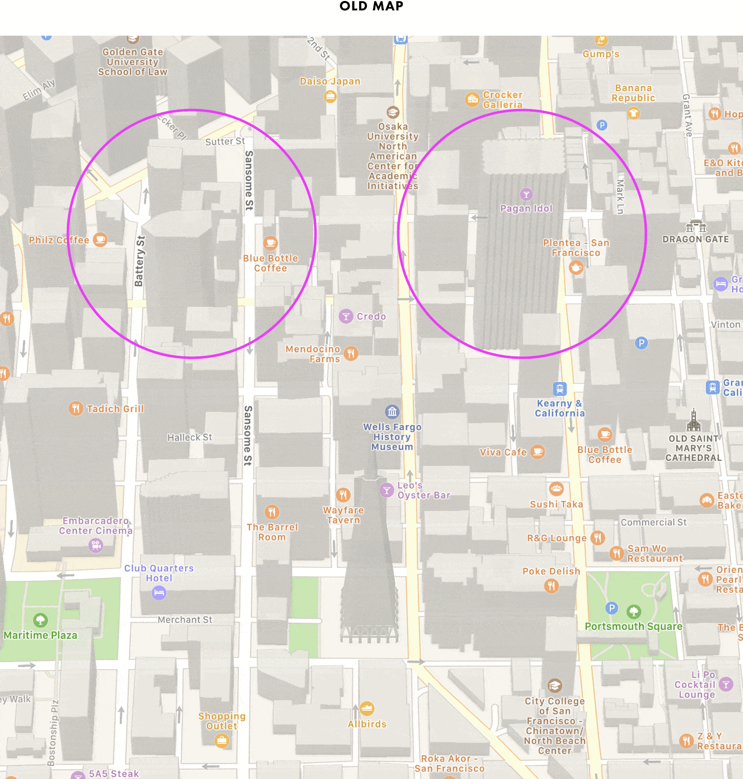 Looking at that specific building (Five Embarcadero Center) on the old and new maps, it’s a big difference from before: